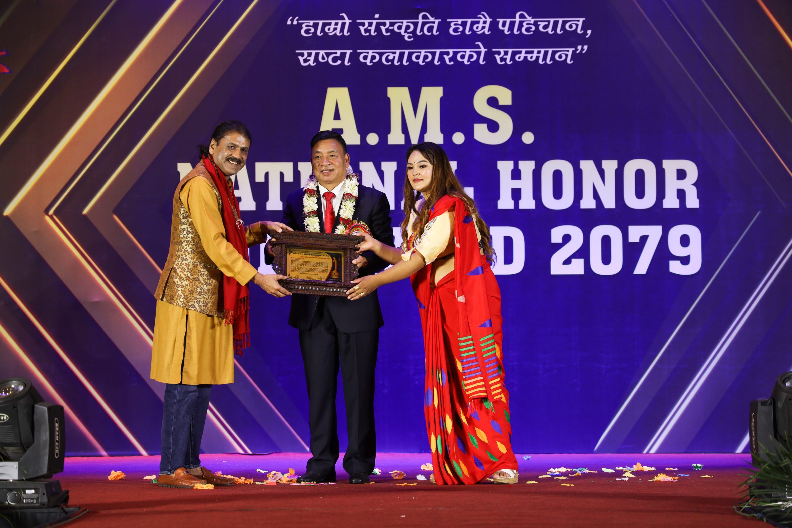 The A.M.S. National Honor and Award 2079 was a landmark celebration of recognition and inspiration dedicated to honoring the individuals whose dedication and service have left a meaningful mark on Nepali society. Hosted by A.M.S Music and Entertainment Pvt. Ltd., this prestigious event was held on Ashoj 09, 2079, at the luxurious Hyatt Regency, Kathmandu, and brought together a rich blend of culture, pride, and national spirit.